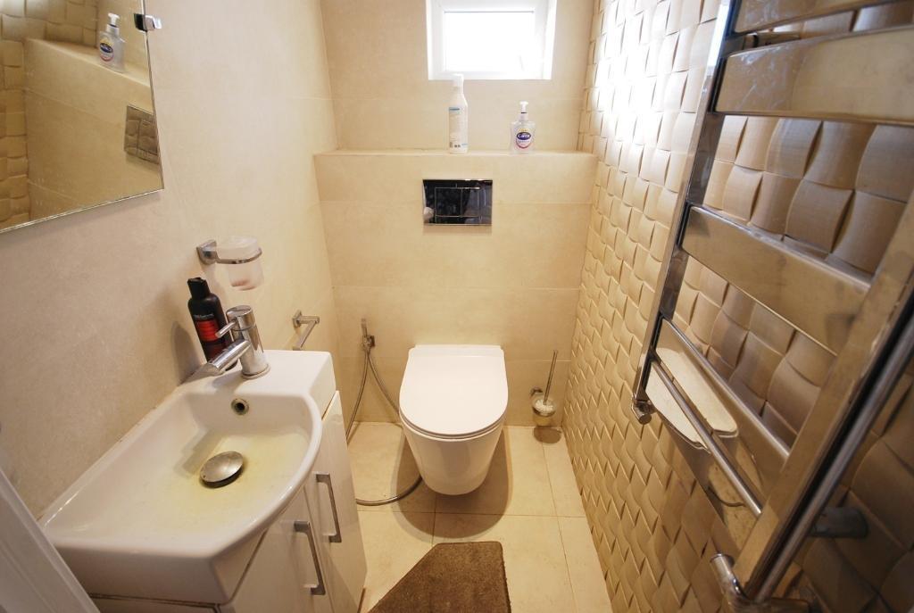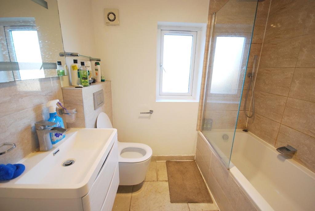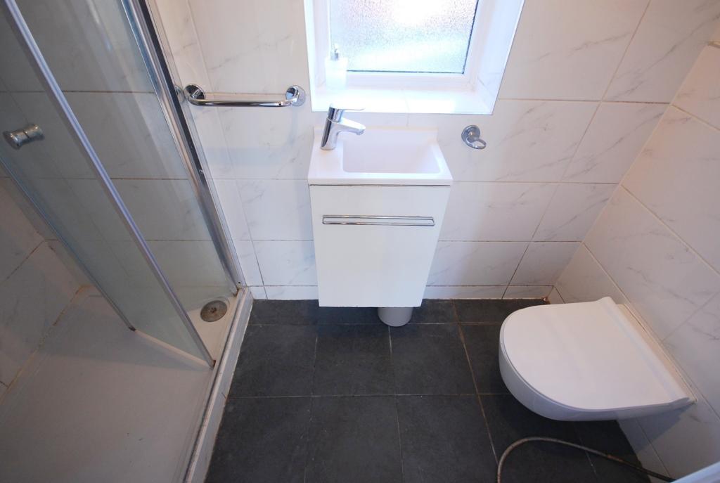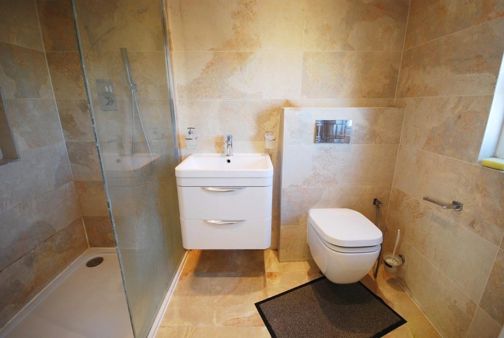 5' 0'' x 3' 1'' (1.53m x 0.97m) Tiled flooring and fully tiled walls, side aspect double glazed windows, hand basin, W/C, towel radiator, extractor fan